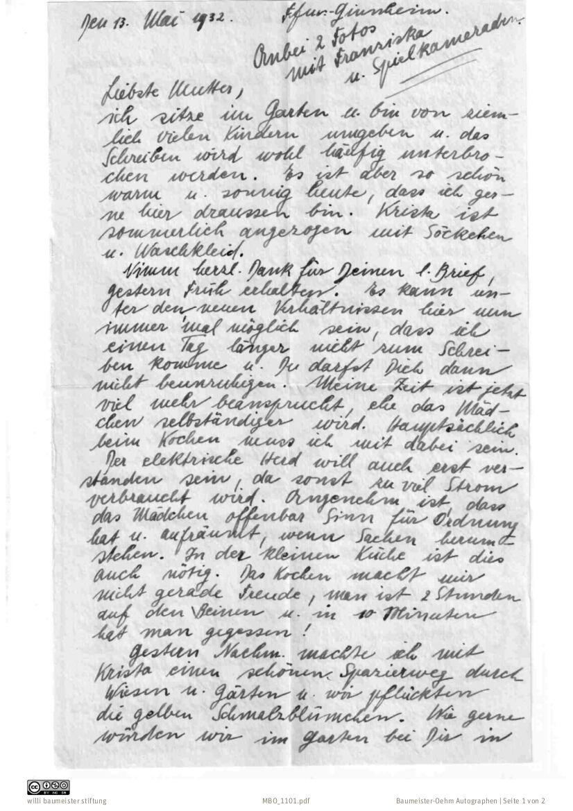 Brief, enthielt 2 Fotos: „mit Franziska u. Spielkameraden“: fehlen