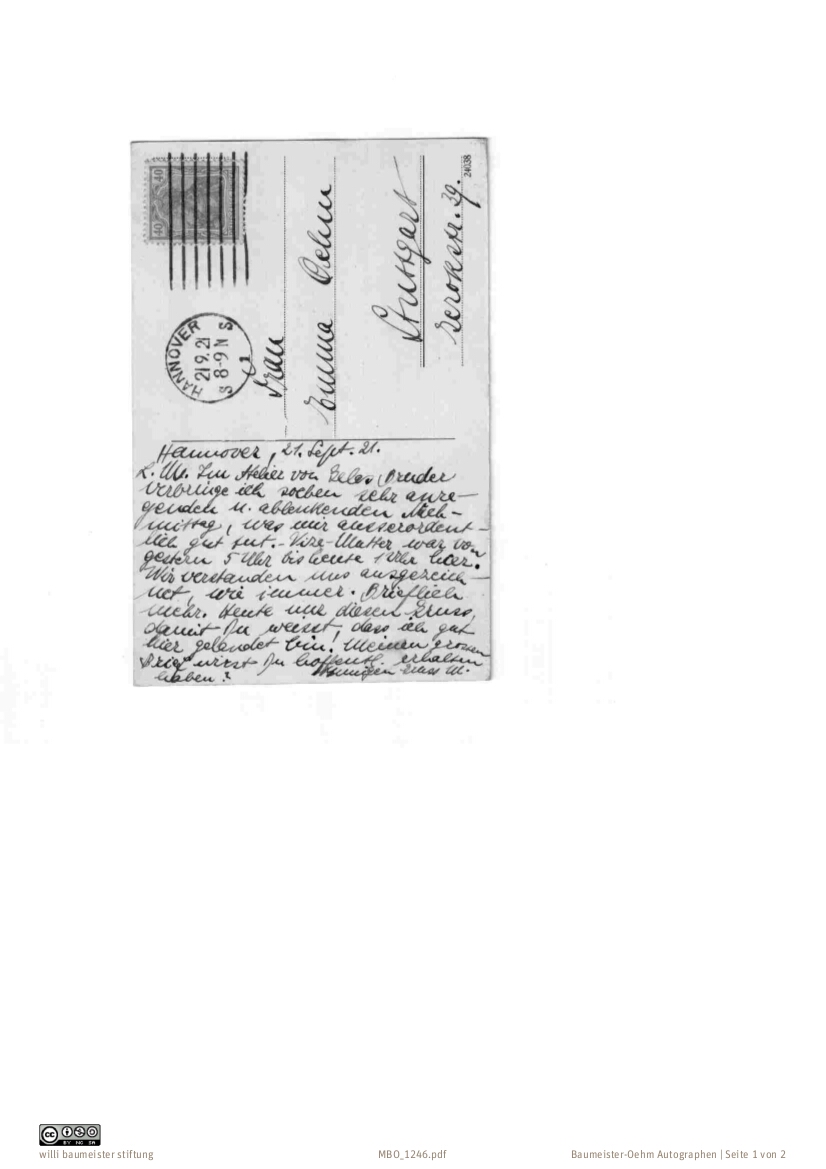 Aufenthalt in Hannover, Kunst: „Im Atelier von Gelas[?] Bruder verbringe ich soeben sehr anregenden u. Ablenkenden Nachmittag, was mir ausserordentlich gut tut.“
