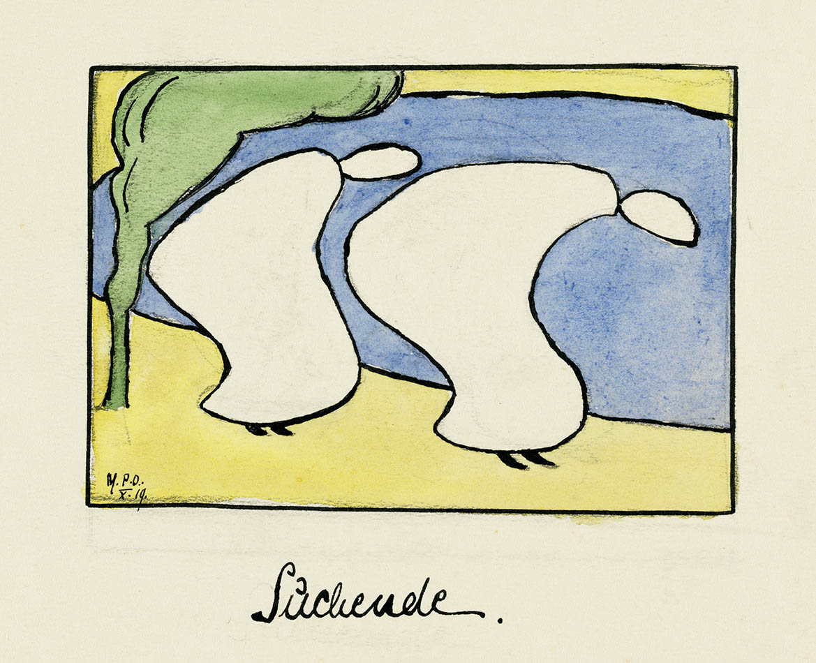 SIGNATUR: "M. P. O. X. 19." (im Bildmotiv links unten) "Suchende." (unter dem Bildmotiv Mitte)
